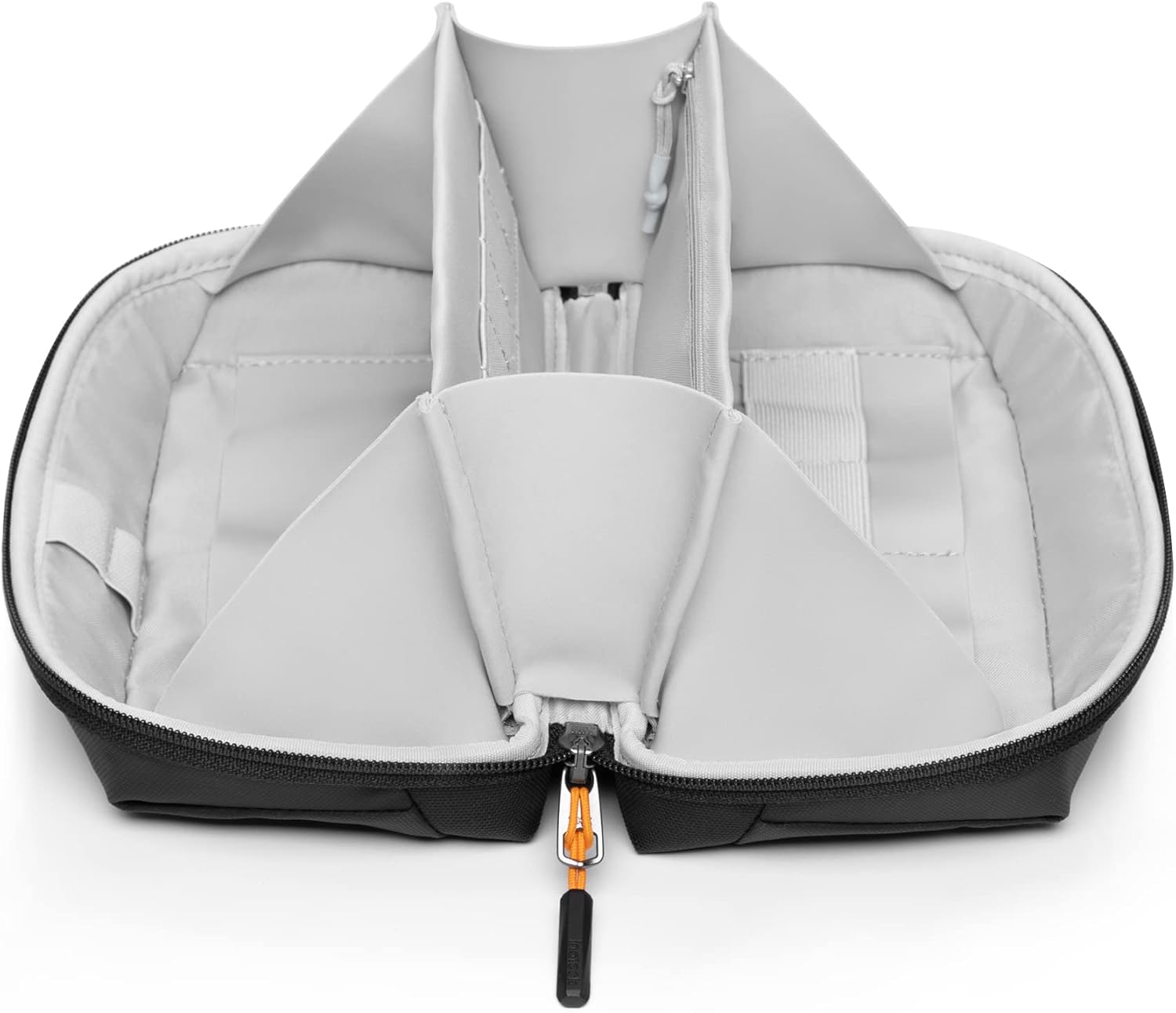 There are 12 different compartments or pockets to store your charger, hard drive, power bank, mouse, earphones, USB cables , notebooks etc.